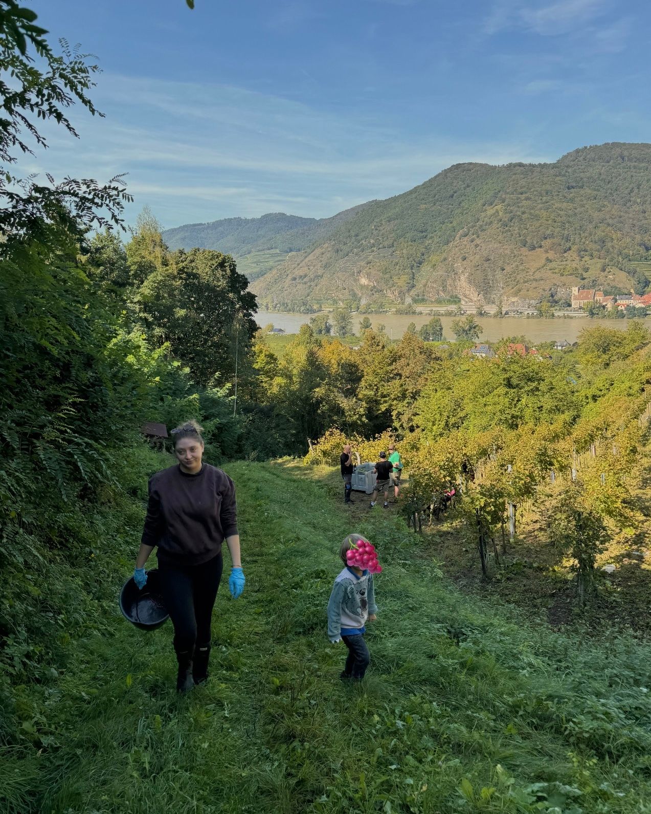 Speaking from experience, after harvesting for six hours in the hazy rain picking grapes, standing in wet socks, carrying buckets up and down steep terraces and hills (90% of the Wachau terraces are so steep no tractor can handle them), nothing is romantic anymore. They call it fun family time, I call it free labour with a view. You might be able to take a girl out of Vienna every weekend and put her in wellies, but you can’t shut her need to complain about something quintessentially beautiful.