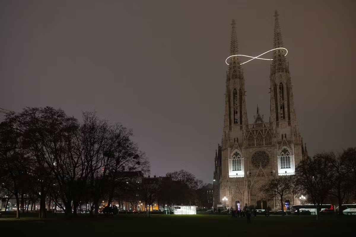 This is the week where we are quietly hoping that lightness outweighs darkness, so it feels appropriate that Vienna has added a new line of light to its skyline. Between the two towers of the Votivkirche now hangs Unendlichkeit des Lichtes by Billi Thanner, a 28 meter wide infinity symbol in aluminium fitted with around 4,900 warm white LEDs. It was first illuminated on 16 December and is scheduled to stay until 1 August 2026, which in city terms is practically forever. Thanner describes the piece as “not primarily an invitation to look, but a reminder of the light that connects us,” and has said simply, “light is life… at some point came the impulse to make infinity visible in light, not abstract, but real in the urban space.”