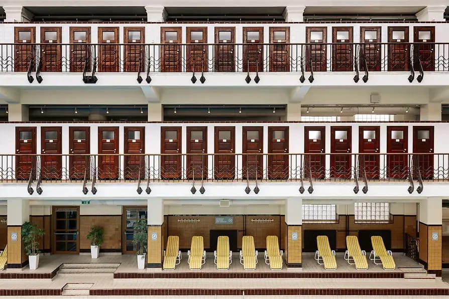 Opened in 1926 and built during the Red Vienna era, it was designed as public infrastructure with an Art Deco interior with richly tiled surfaces. Switch up freestyle for backstroke for a moment and look up while you swim and you will get the best detail: the glass roof.
